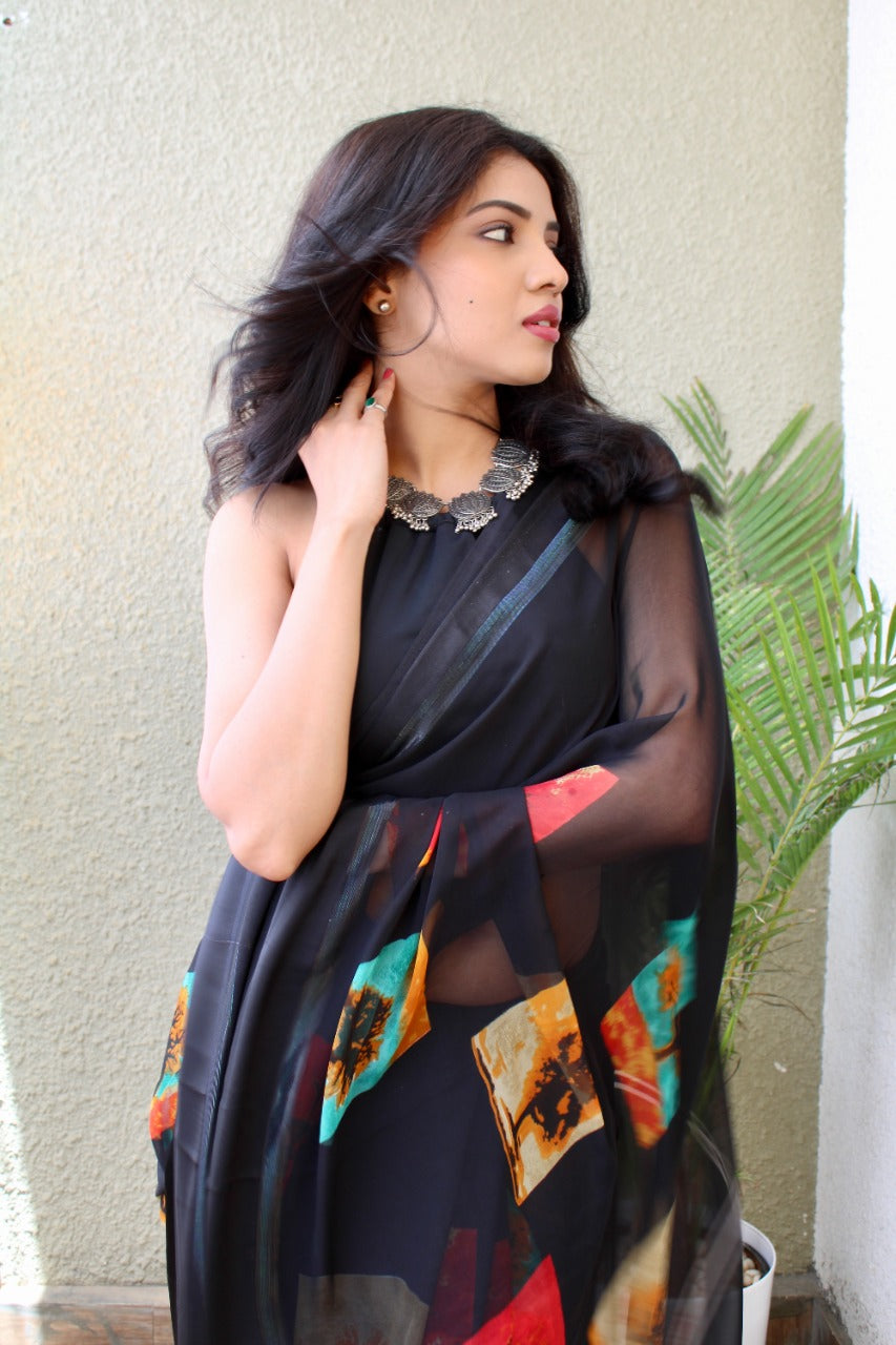 Elevate your ethnic wardrobe with our Black Box Satin Patta Saree, a perfect blend of tradition and style. Made from rich satin fabric with a smooth patta (border) finish, this saree offers a luxurious feel and stunning fall that’s ideal for festive wear, weddings, or special events.
