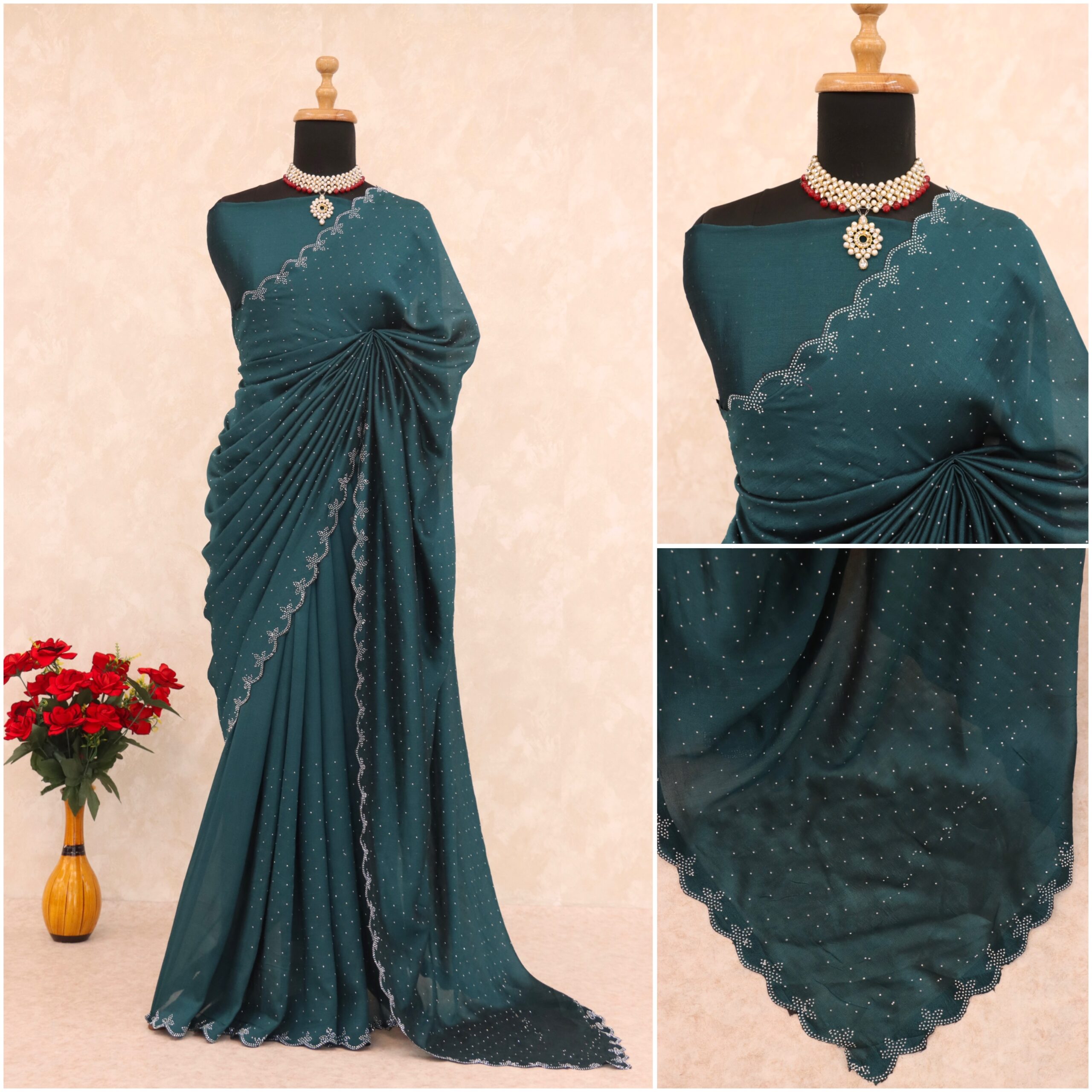 🧵 Fabric: Premium Vichitra Silk – soft, lightweight & glossy