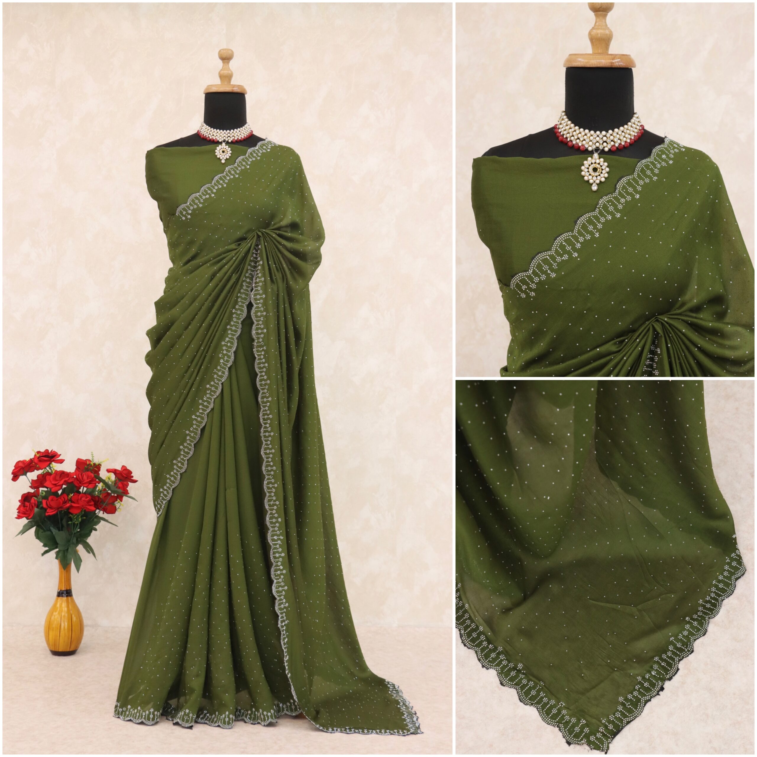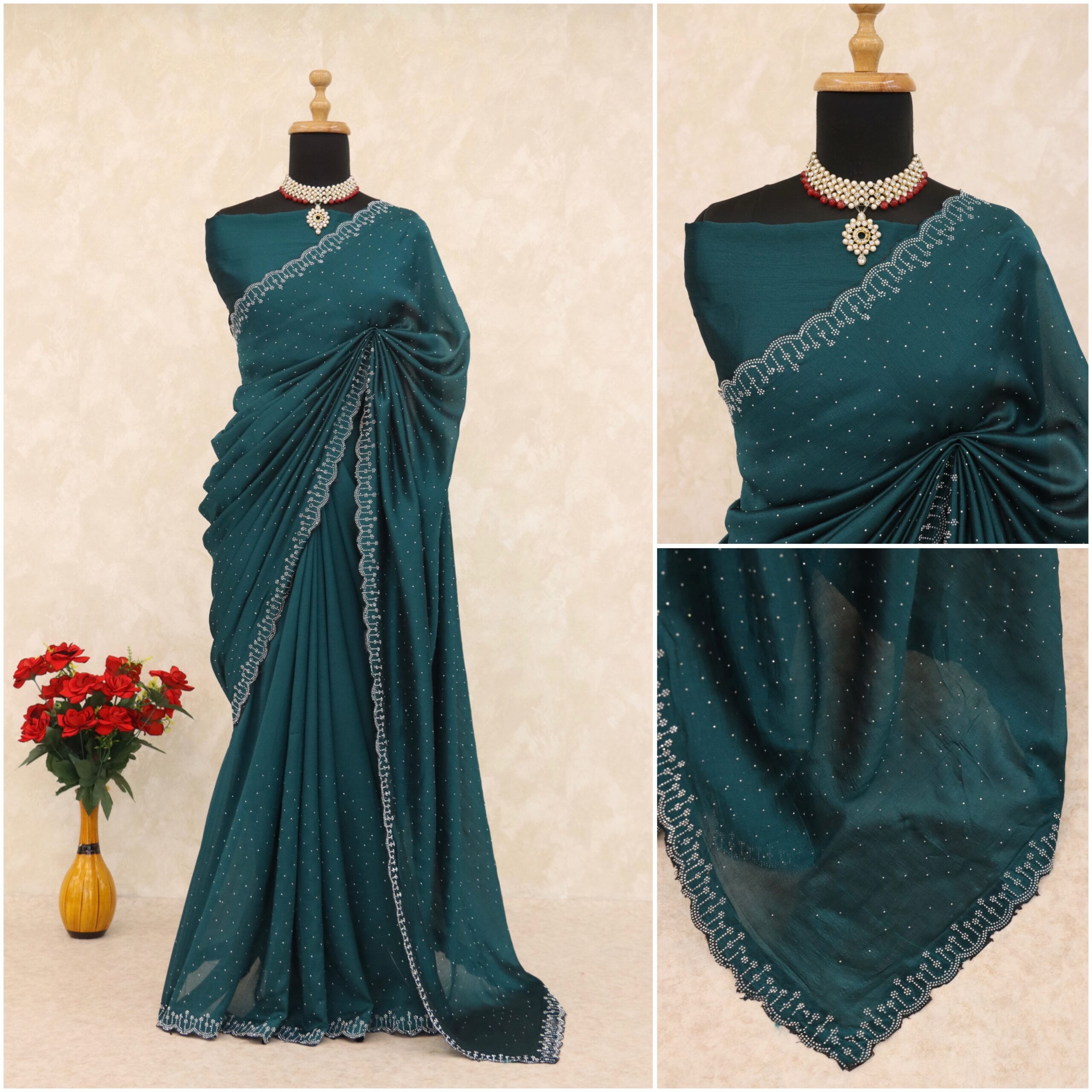 🔸 Design: Elegant embroidery with zari border
